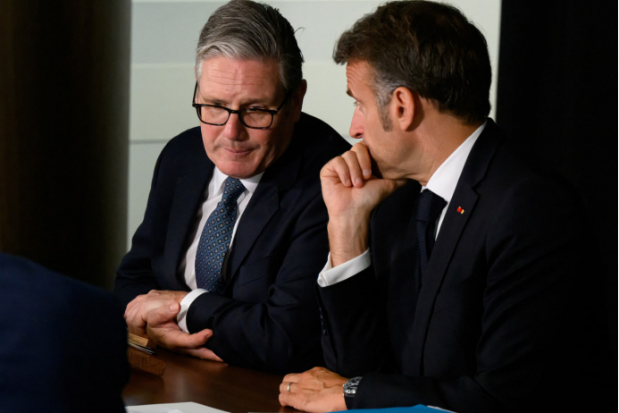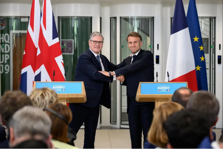 ▎2025日,英国首相斯塔默(左)和法国总统马克龙(右)在伦敦举行新闻发布会,宣布俄乌停火后将乌克兰的“意愿联盟”总部设在巴黎。