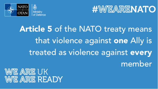 ▎《北大西洋公约》第五条即集体防御条款规定,“对于一个或数个缔约国的武装攻击应视为对缔约国全体的攻击”。(图源:美国国防部X账号)